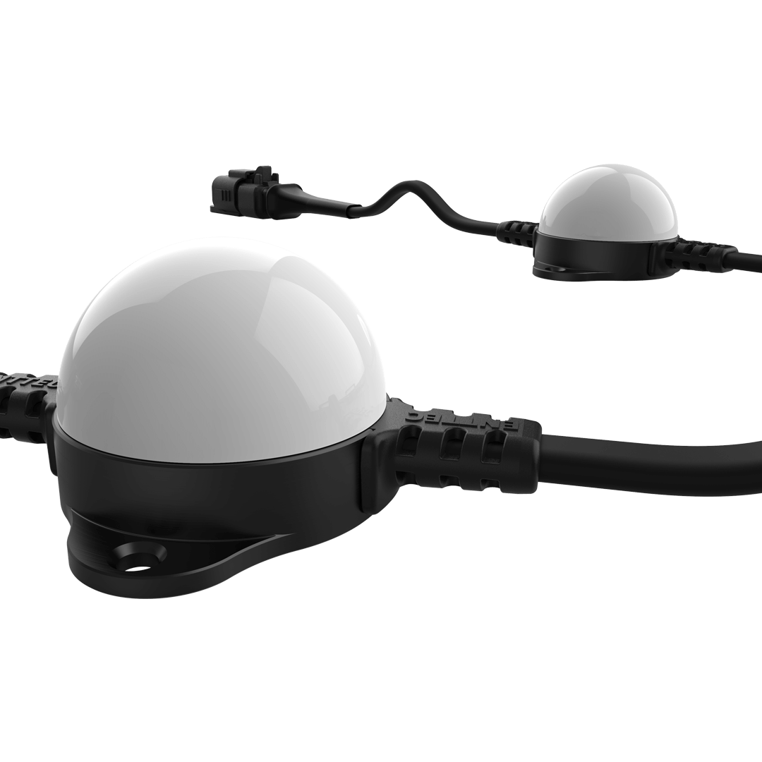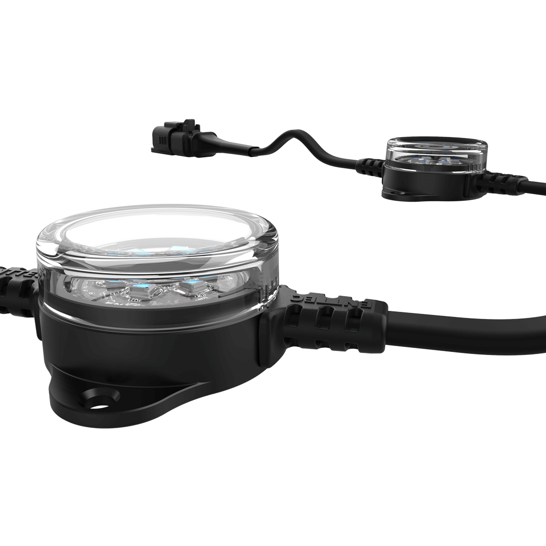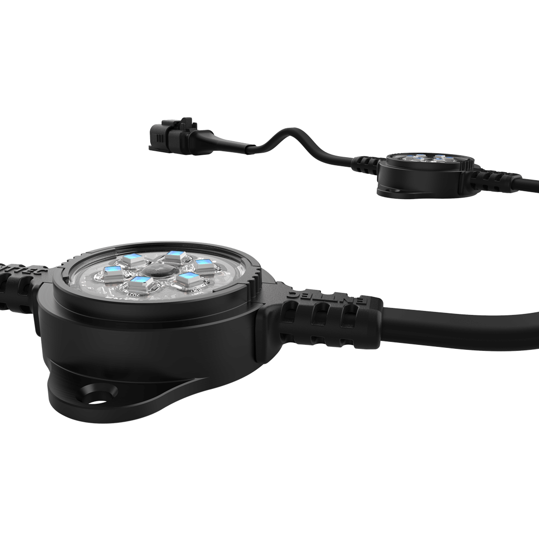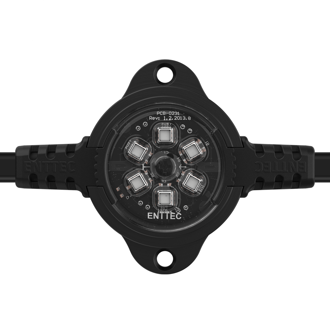 Flexible strings of ultra-bright, high-resolution 41.5mm RGB LED dots with robust, aluminium cases for all-weather use