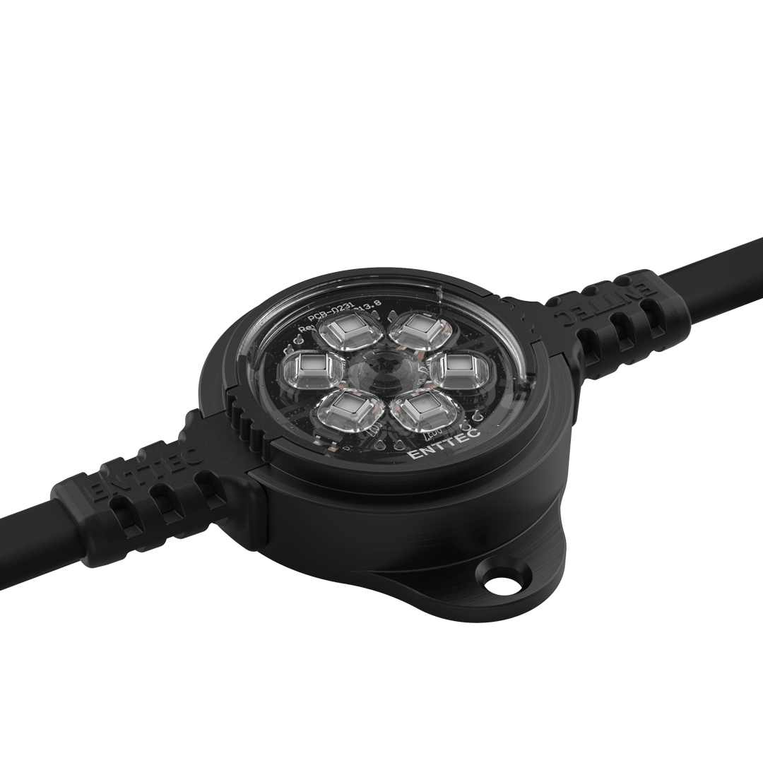 ENTTEC’s high-resolution, individually addressable SMART PXL40 LED pixel dots feature robust, weatherproof UV-resistant cases made from marine-grade aluminium to withstand the harshest environments. These versatile, easy-to-install RGB dots can be easily configured into virtually any shape, creating striking, precise lighting effects that double as a bold design feature. Designed by lighting professionals for lighting professionals, they elevate any architectural, commercial, or entertainment project to the next level.