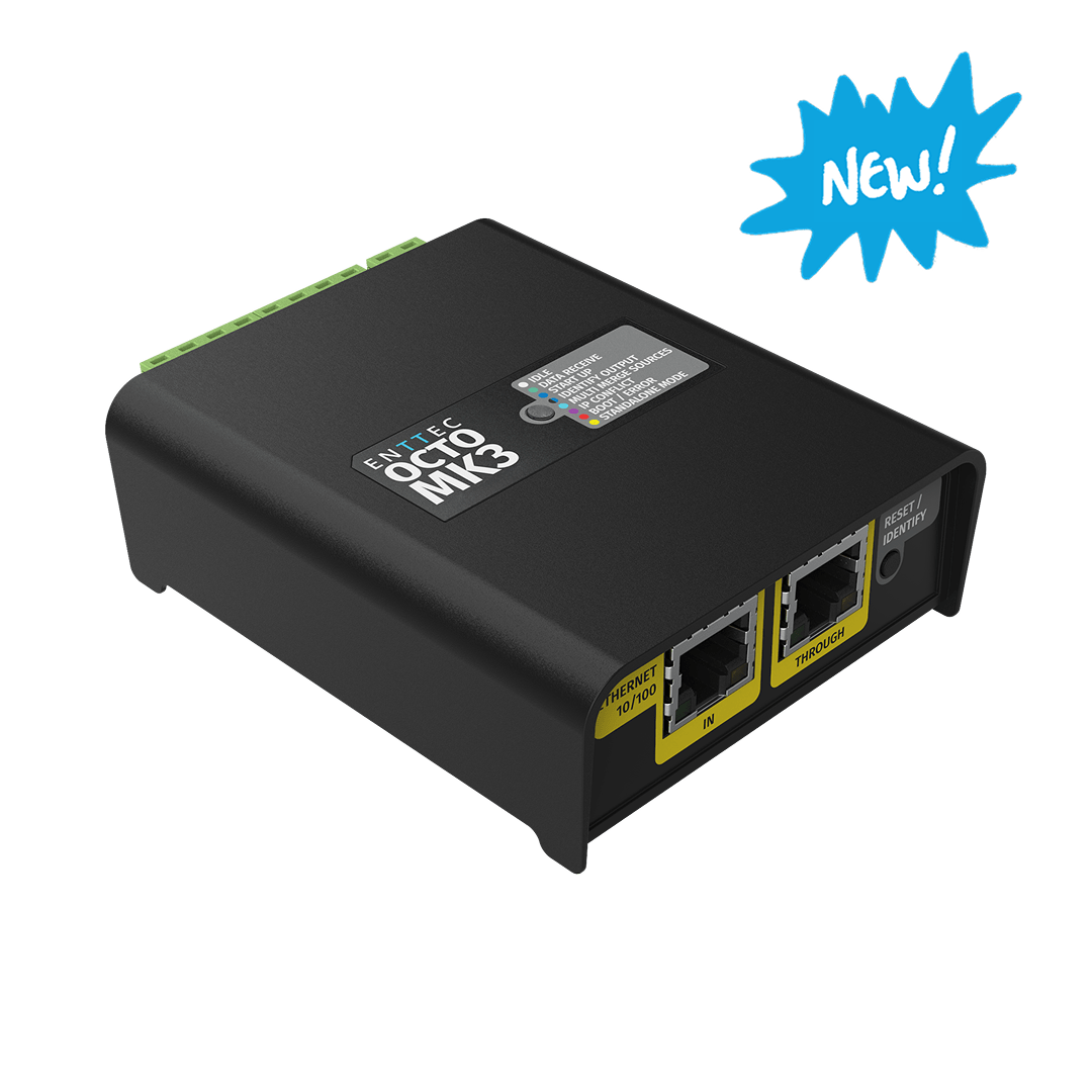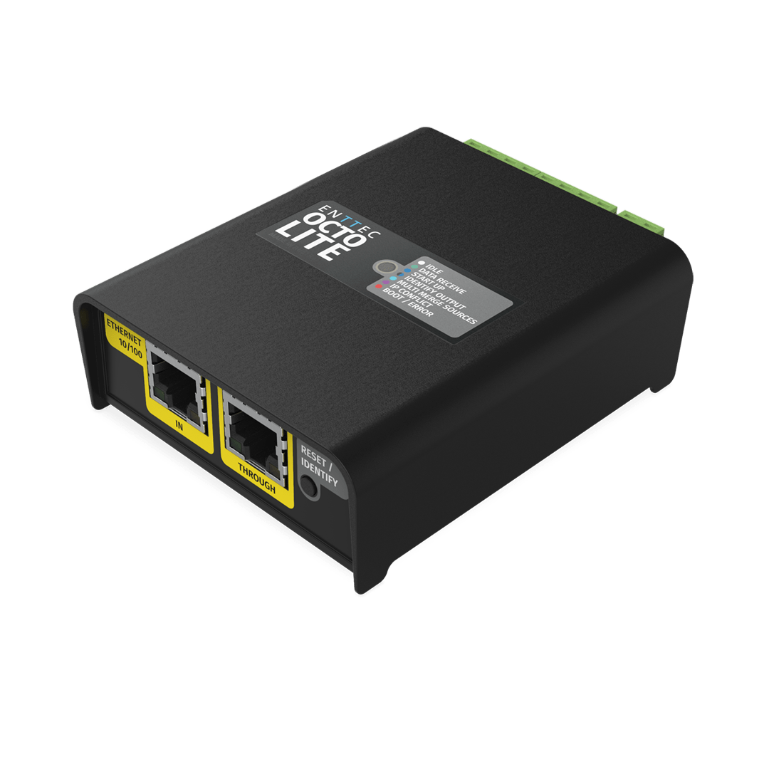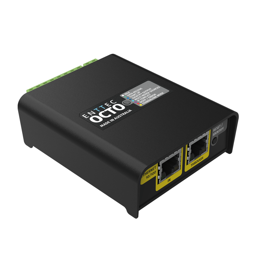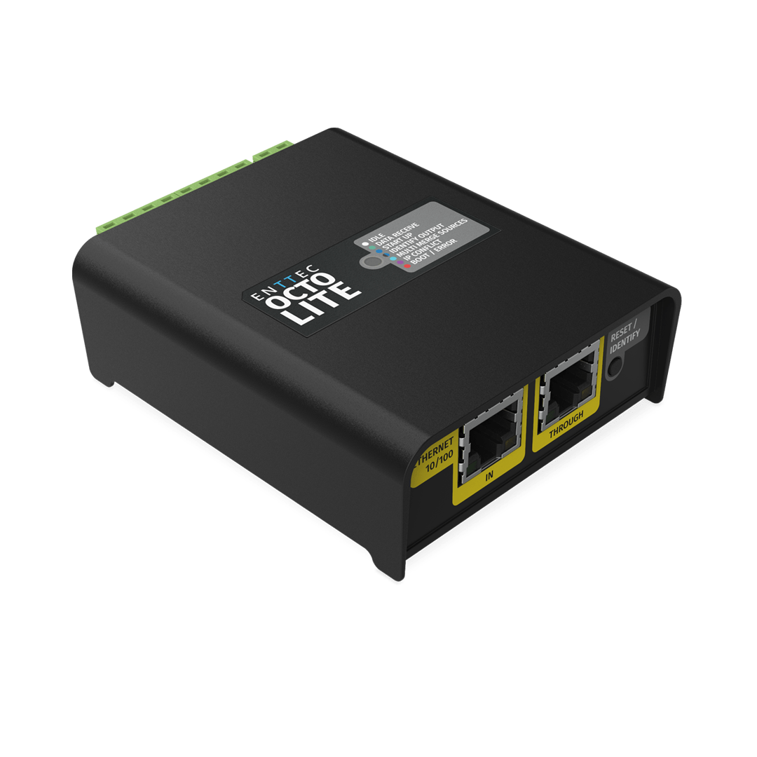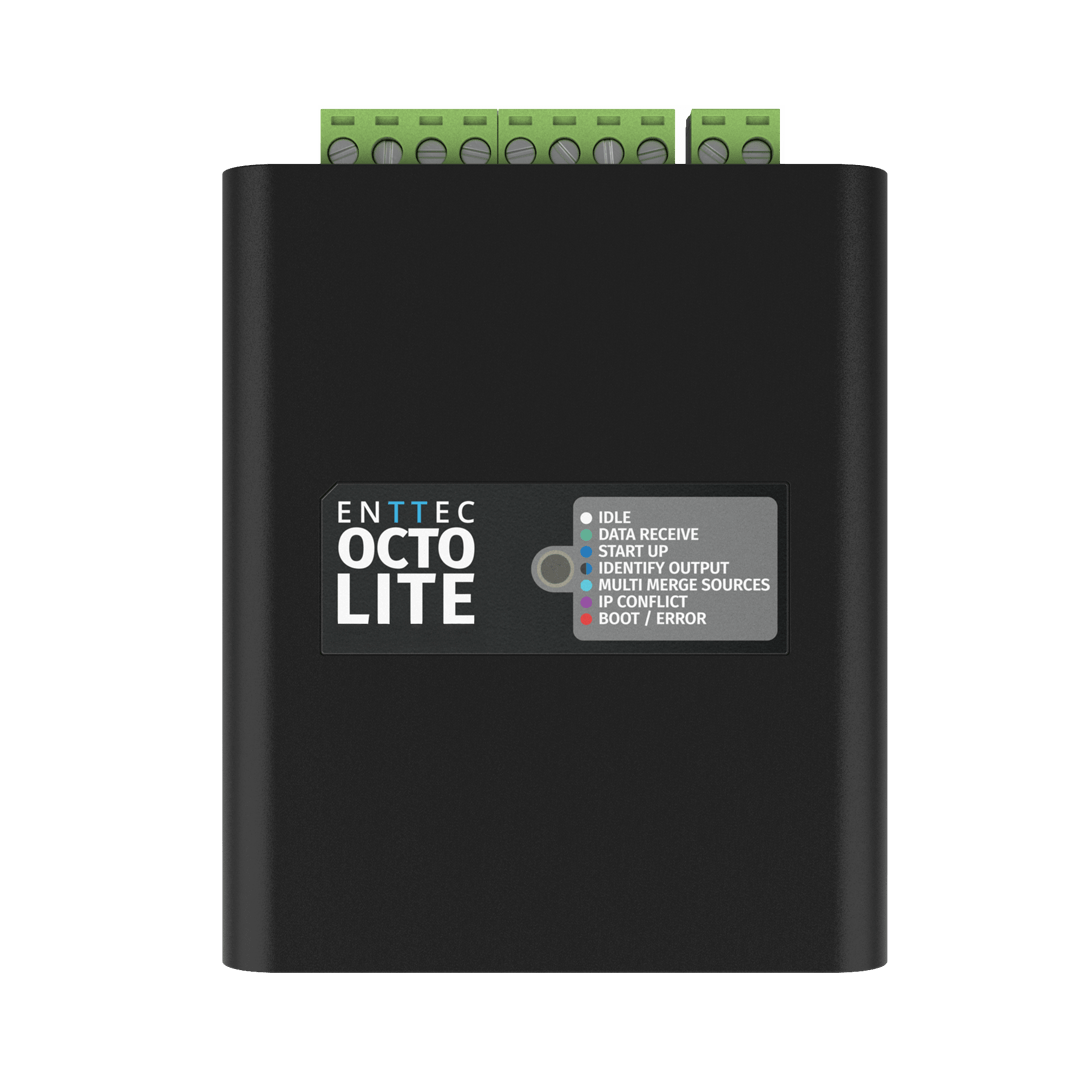 The OCTO LITE is a compact LED pixel controller that delivers 8 universes of eDMX-to-pixel conversion in a 4-module DIN-rail form factor. Supporting up to 1,360 RGB or 1,024 RGBW pixels per controller, this SPI pixel controller unit handles Art-Net, sACN, and ESP protocols with the same proven OCTO architecture trusted in installations worldwide.