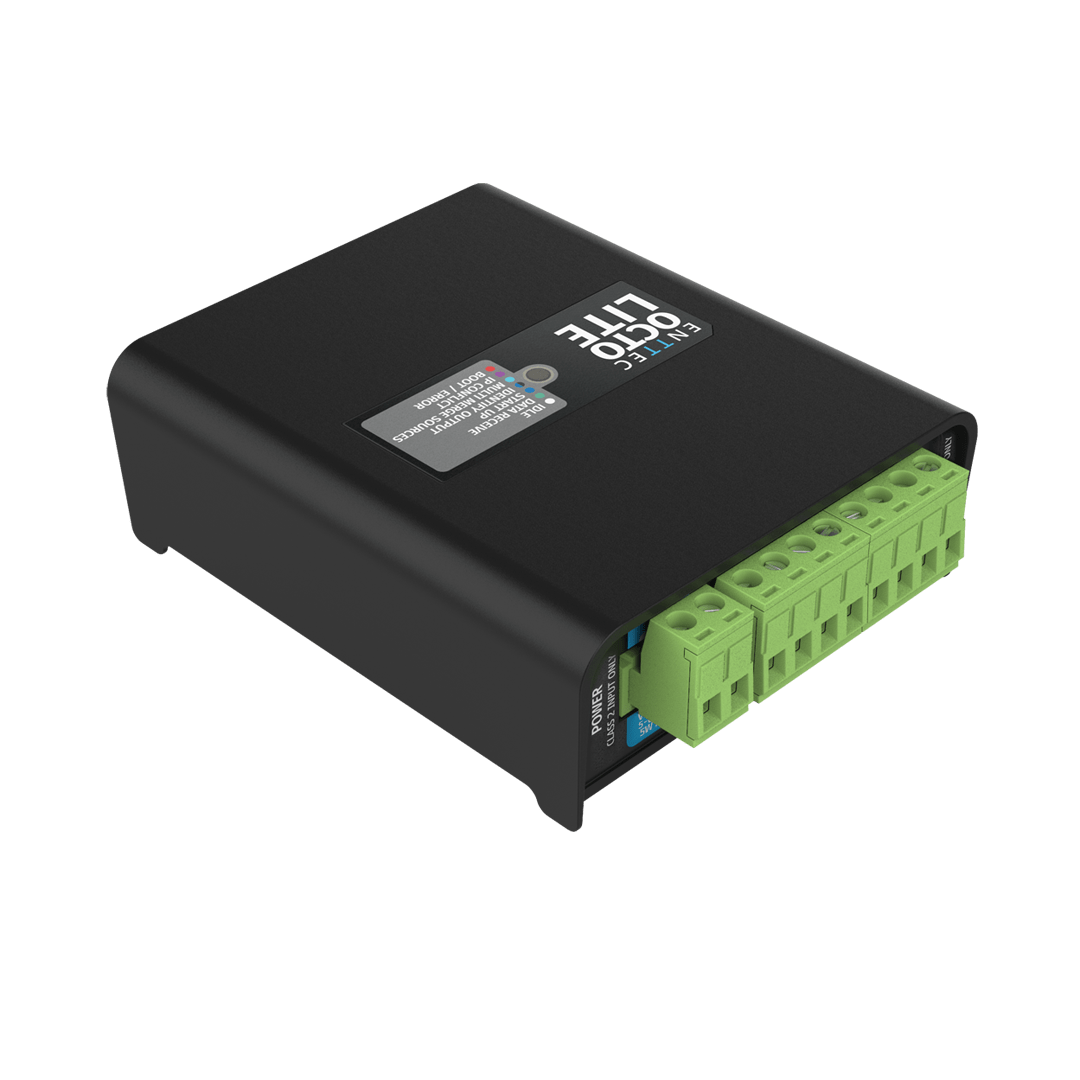 Built for compact installations, the OCTO LITE focuses on core functionality: wide protocol support, custom protocol creation, dual Ethernet ports for network passthrough, and flexible 5-60V power input. The result is installation-grade performance in a compact package that simplifies deployment in space-constrained environments.