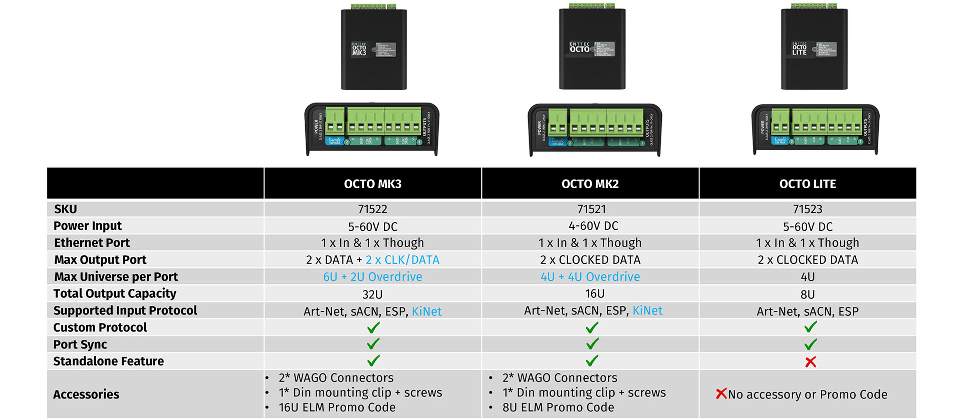 OCTO series comparison chart